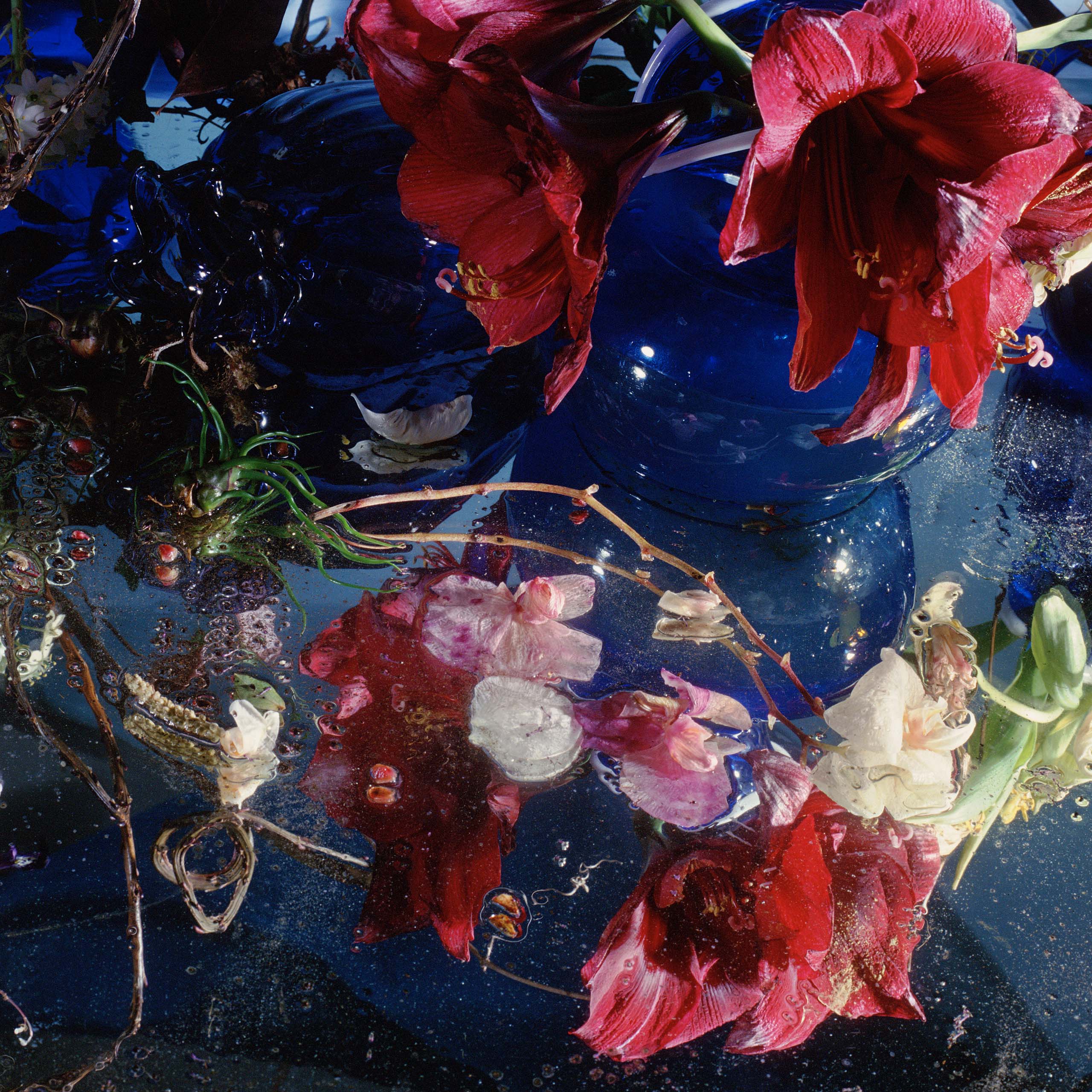 On my water mirror with flowers as protagonists. I like to see people, especially women as flowers. I make the works big to respect and get drunk.