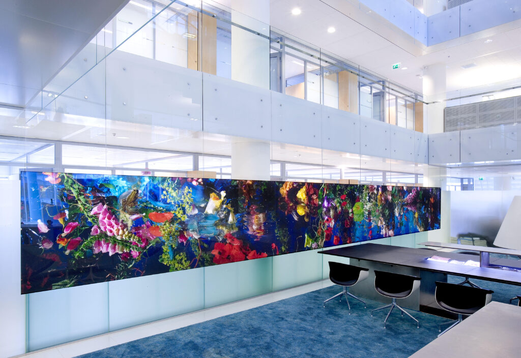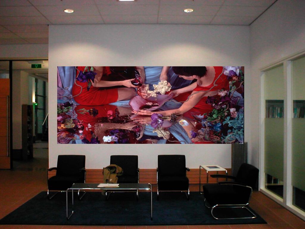 A work 11 metres wide, commissioned by Houthoff-Buruma law firm, Amsterdam, featuring frogs, irises, and fishes (September 2005). Serie Amor Omnia Vincit (2005) “There is a subtle menace in Smulders’s photograph: twisted twigs cut across the