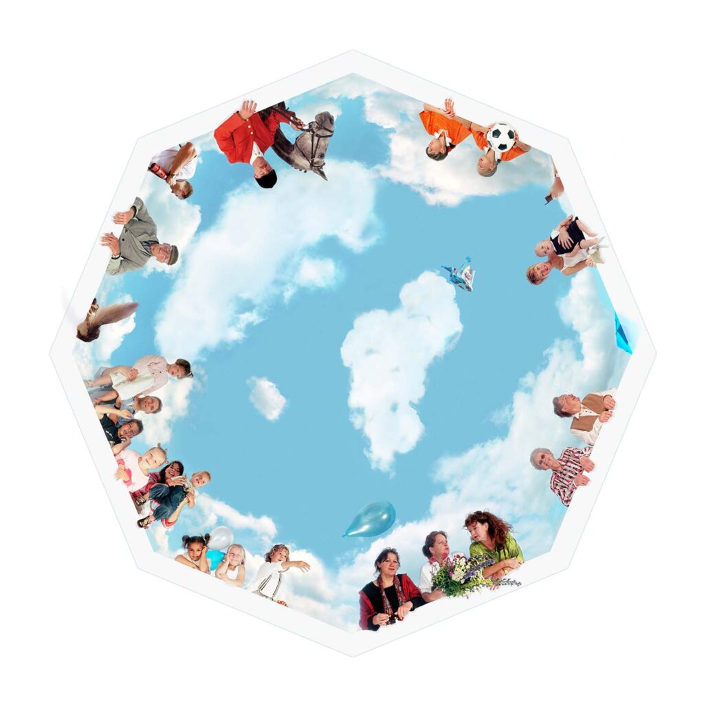 Municipality of Wychen For the municipality of Wychen I made in the little village Bergharen a big photograph of 5,5 meter diameter. Inspired by Italian ceiling-paintings of the 17th century, several residents of the village were asked to model