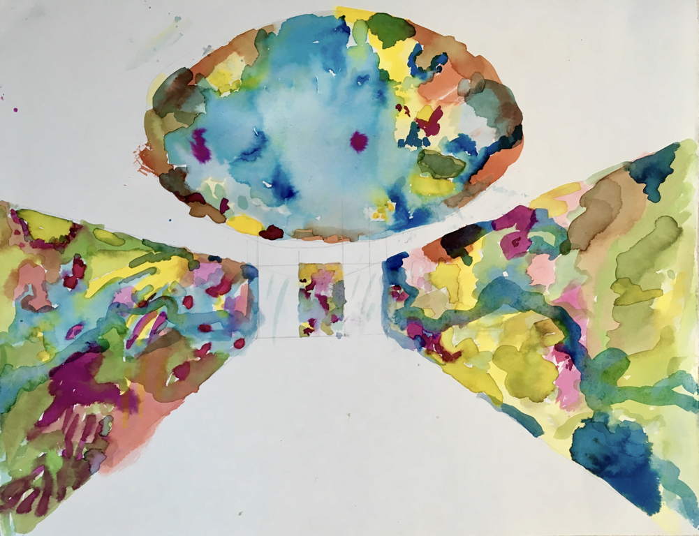 Ins Blaue hinein träumen is a trilogy of ceilings called Quelle (source, 11x24m), Strömung (flow, 9x18m) and Mündung (mouth, 6x18m). The three ceilings embellish the Emsgalerie in Rheine, Germany and are the biggest productions Smulders has ever undertaken and