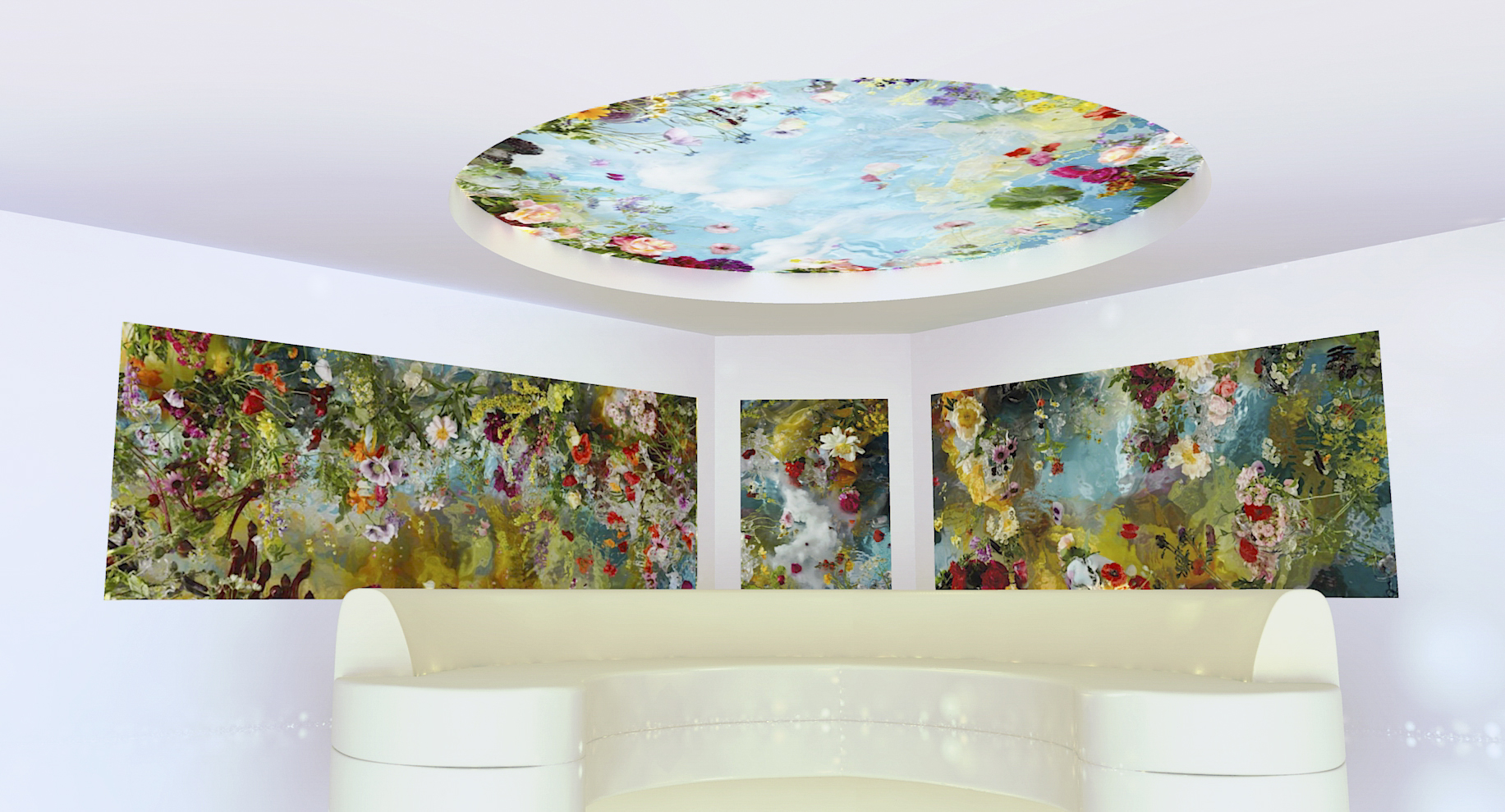 The sketches above show some very basic layouts. A space can be totally changed when these outstanding artworks are installed. You will be surrounded by beautiful flowers that can instantly enhance your mood. These works are extremely detailed, life-size flowers.