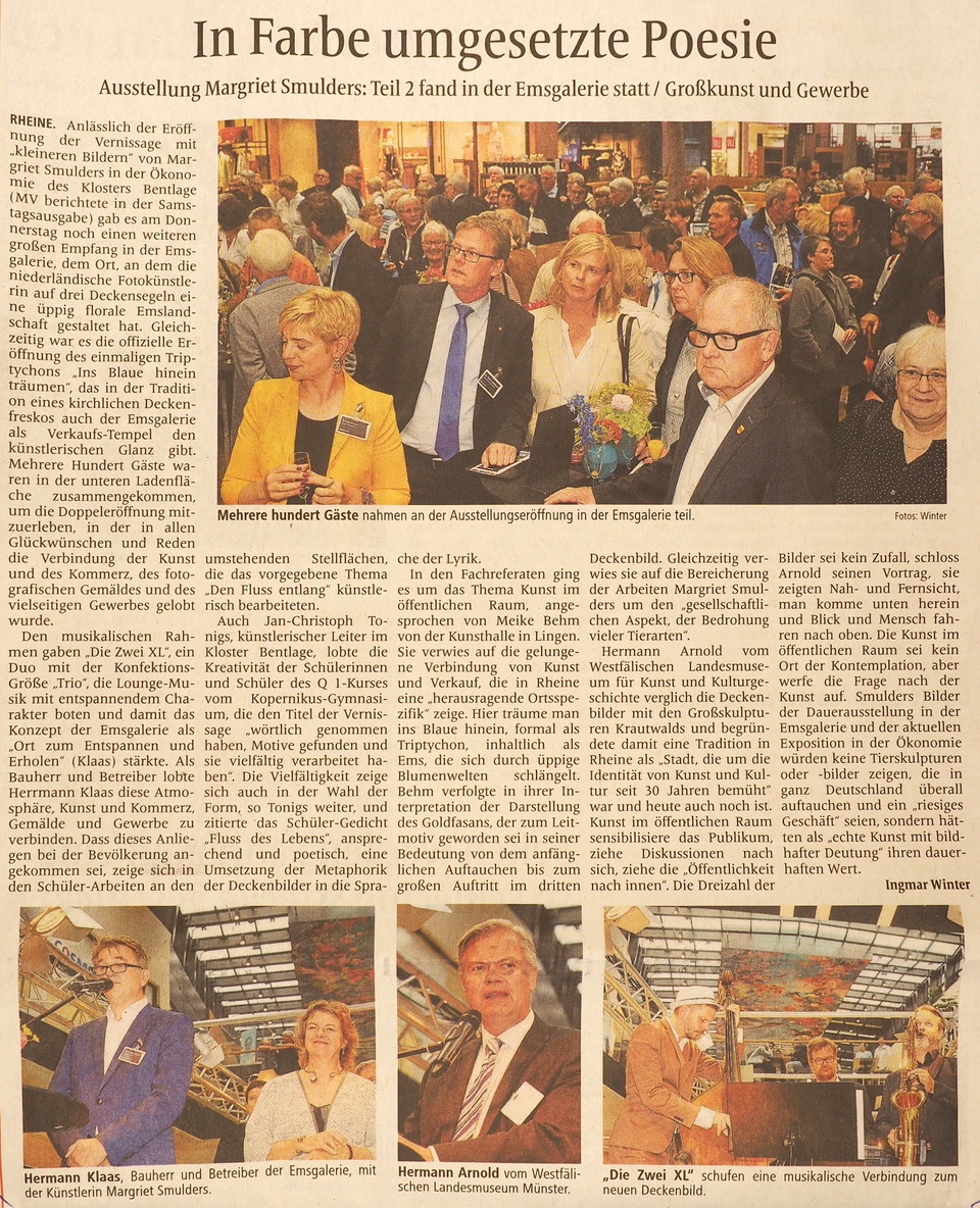 In July 2017 the German newspaper ‘Münsterländische Volkszeitung’ publiced an article about my ceiling in the Emsgalerie.