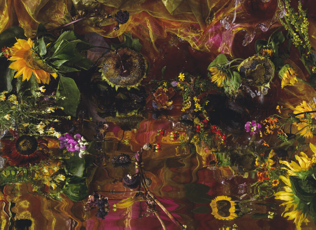 Please protect me, is made to comfort people who lost their dearest ones. The inspiration to make this triptych not only came from the blooming sunflowers on the 17th of July 2014. I was motivated to soften the horror of the MH17 disaster and the fate of volunteers looking for remnants of bodies between the sunflowers in East-Ukraine. The sunflower is the national symbol of Ukraine.