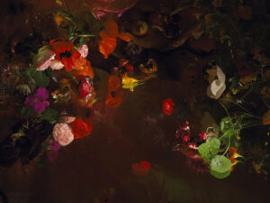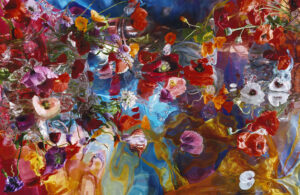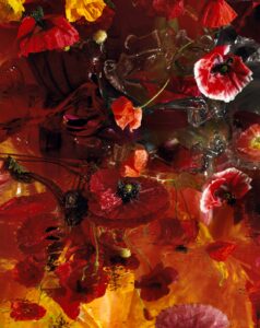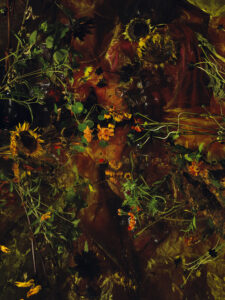 This work, S/He Died to Save Our Souls, one of a tryptich, is made to comfort people who lost their dearest ones. The inspiration to make this triptych not only came from the blooming sunflowers on the 17th of July 2014. I was motivated to soften the horror of the MH17 disaster and the fate of volunteers looking for remnants of bodies between the sunflowers in East-Ukraine. The sunflower is the national symbol of Ukraine.
