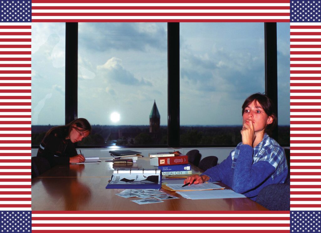 Drs. Mathilda roza, aio Amerikaanse letterkunde en Roxanne Segers, eerstejaars Nederlands